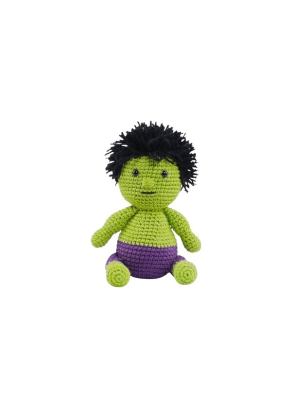 This mighty hero is ready to smash away your worries and bring big smiles. With his bright green body, messy black hair, and signature purple shorts, he’s handcrafted with love and packed with personality.